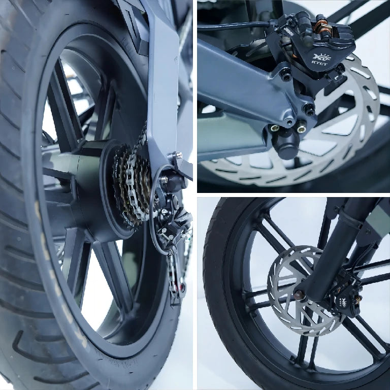 Front/Rear dual oil disc brakes, easy to brake at any point with single hand